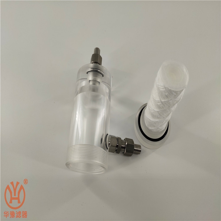 外殼采用有機玻璃外殼。結構新穎,更換濾芯時只需旋開下端蓋即可。過濾器出口設置止回閥,可以防止儀表電極失水。